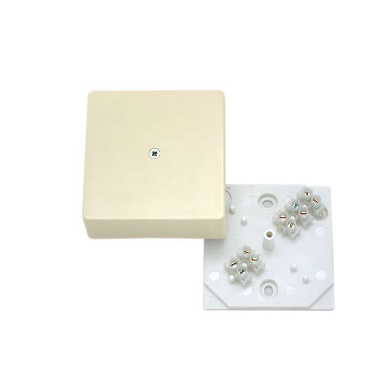 Коробка распределительная 75х75х30мм с клеммником, слоновая кость используется для разветвления и соединения электрических проводов и кабелей внутри зданий. Применяется там, где требуется надёжное, доступное и защищённое место для ответвлений - например, при монтаже освещения, розеток, автоматических выключателей или других устройств в системах с открытым способом прокладки проводки.