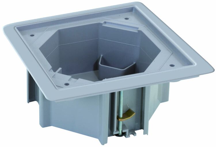 Коробка установочная влагостойкая для фальш-пола, цвет серый от Simon (арт. kge170tf-23) предназначена для скрытого монтажа в конструкциях фальш- полов и бетонных основаниях под заливку, обеспечивая доступ к кабелям без вскрытия всей системы.