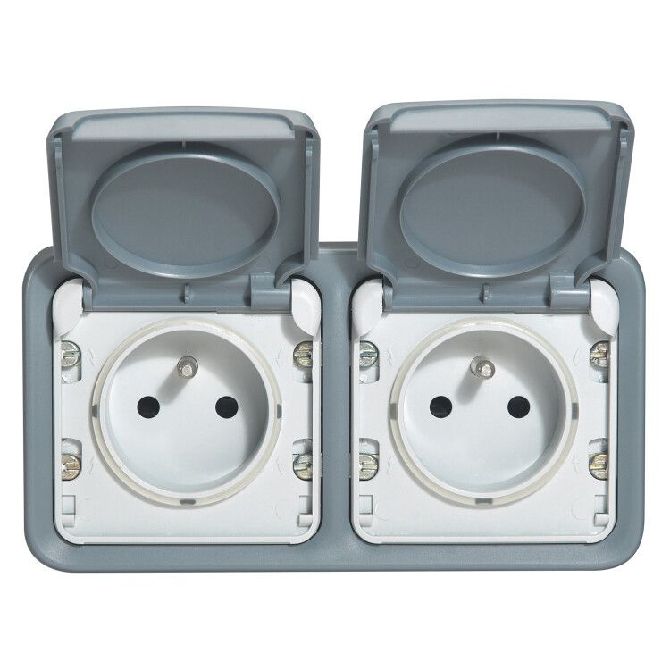 Коробка установочная двухместная горизонтальная для наружного монтажа серая IP55 используется для монтажа электроустановочных изделий вне помещений - например, на фасадах зданий, в подъездах, на улице или в промышленных зонах. Подходит для установки выключателей, розеток, термостатов и других устройств серии Plexo. Благодаря высокой степени защиты IP55, коробка защищает оборудование от пыли и струй воды, что делает её идеальной для условий повышенной влажности и запылённости.