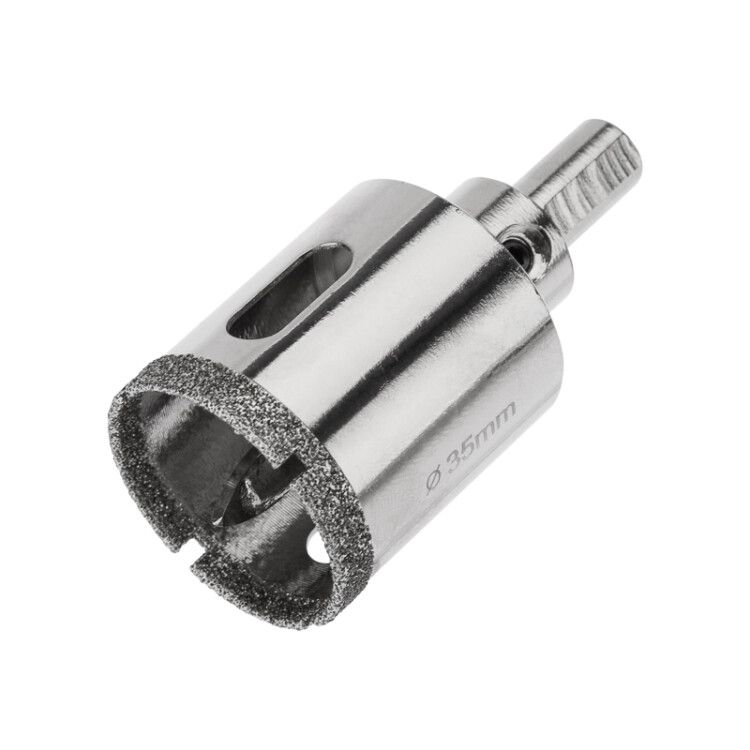 Коронка алмазная 35 мм по керамограниту с центровочным сверлом применяется для создания отверстий под трубы, розетки, светильники и другие элементы в твёрдых поверхностях. Подходит для работы с керамогранитом, керамикой и стеклом. Не предназначена для бетона, металла или древесины.