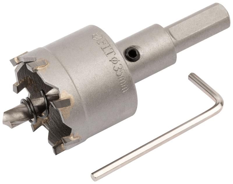 Коронка кольцевая с карбидными вставками Профи (для отверстий в нержавеющей стали) 35 мм - 36835 FIT - это незаменимый инструмент для сверления отверстий в нержавеющей стали и других материалах, таких как алюминий, сталь и латунь. Она обладает рядом преимуществ, которые делают ее отличным выбором для профессиональных задач.