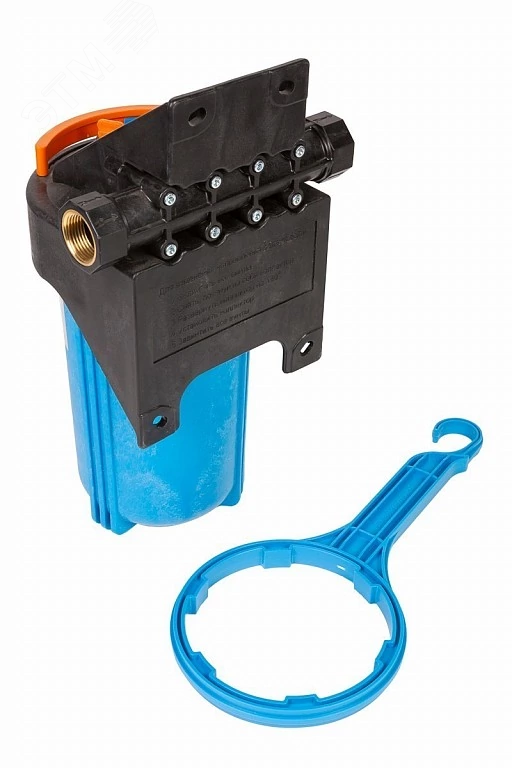 Корпус магистрального фильтра 10BB 1М10 Т совместим с любыми картриджами формата Big Blue 10". Резьбовое соединение G1" соответствует стандартным трубам в бытовой гидравлике. Поворотный коллектор позволяет монтировать корпус в любом направлении - слева направо или справа налево - что особенно удобно при ограниченном пространстве. Кронштейн интегрирован в крышку, поэтому не требует дополнительной фиксации. Для монтажа используйте обычные инструменты: ключ из комплекта и герметик на резьбе (при необходимости).