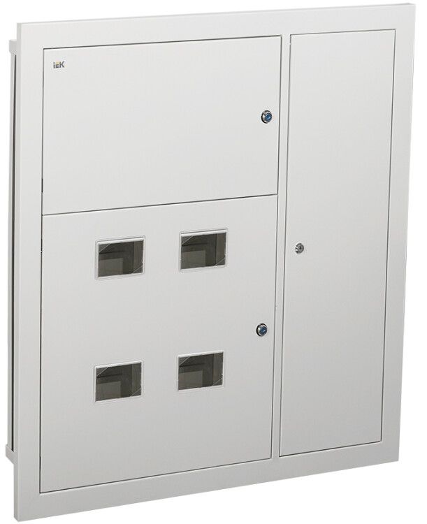 Корпус металлический ЩЭ-4-Э 36 УХЛ3 IP31 имеет три отсека, каждый из которых оснащён монтажной панелью с предустановленными точками крепления для DIN-реек. Вводно-учётный и распределительный отсеки позволяют разместить счётчики и автоматические выключатели. Шины N и PE крепятся на специальные кронштейны. Отсек слаботочных систем оборудован перфорированными профилями - удобно для прокладки кабелей домофона, охранной сигнализации, TV/радио. Монтаж выполняется в нишу стены; перед установкой проверьте глубину проёма - он должен быть минимум 120 мм. Корпус не требует дополнительного крепления после установки - вес распределительного щита равномерно передаётся на стену.