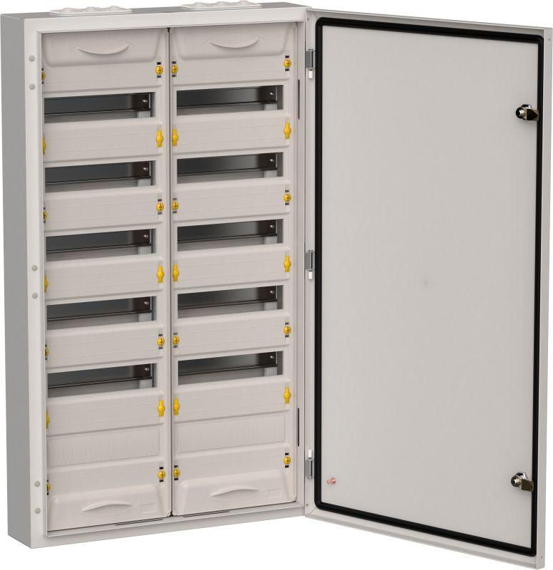 Корпус металлический ЩРн-144 (2х72) 960х570х140 IP54 серый от бренда IEK (ИЭК), артикул ti5-50-n-2x072-54-7035, предназначен для компоновки распределительных щитов с модульной аппаратурой. Этот корпус из стали обеспечивает надежную защиту оборудования в условиях повышенной запыленности и влаги, подходящий для промышленного и коммерческого использования.