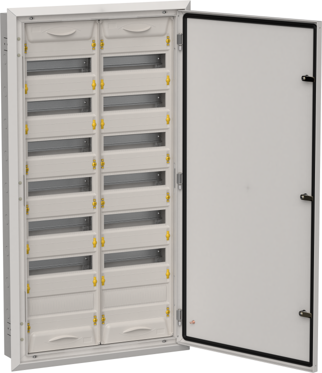 Корпус ЩРв-168 предназначен для сборки распределительных щитов с использованием модульной аппаратуры - автоматических выключателей, УЗО, реле, контакторов и других устройств. Применяется для ввода и распределения электроэнергии в зданиях с напряжением 230/400 В, обеспечивая защиту от перегрузок и коротких замыканий. Подходит для жилых, коммерческих и промышленных объектов, где требуется скрытая установка в стене или нише.