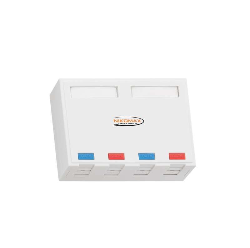 Корпус настенной розетки 4 порта под модули-вставки типа Keystone со шторками бел. NIKOMAX NMC-MB4P-ST-WT ЭКО14326