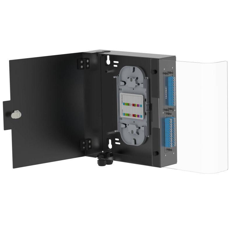 Корпус выполнен из прочного пластика, устойчивого к ультрафиолету и перепадам температур. Прозрачная фронтальная крышка защищает адаптеры от случайного контакта и загрязнения. Конструкция соответствует требованиям к наружному и внутрипомещенному оборудованию для телекоммуникационных систем. Сертификация по ГОСТ и IEC не указана - рекомендуется проверить документацию производителя для проектов с жесткими нормами.