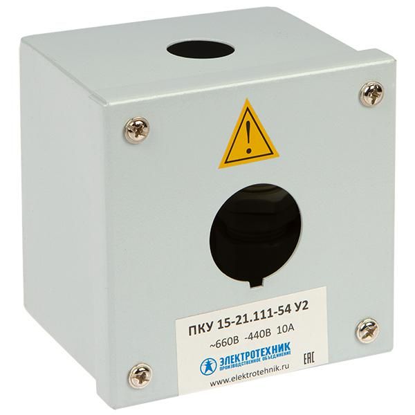 Корпус ПКУ 15-21-111-54 с сальником (ЭТ) используется для размещения коммутационных устройств: выключателей ВК, КЕ; переключателей ПЕ; светосигнальной арматуры СКЛ. Подходит для установки на поверхности внутри помещений или в защищённых зонах на улице - например, на станках, щитах управления, конвейерах, насосных станциях. Благодаря степени защиты IP54, корпус обеспечивает надёжную защиту от пыли и брызг воды, что делает его устойчивым к условиям цехов и объектов с высокой влажностью.