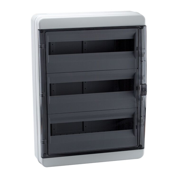 Корпус пластиковый навесной с прозрачной черной дверью 54 модуля IP65 используется для сборки распределительных щитов в жилых, коммерческих и промышленных помещениях. Подходит для установки модульных устройств стандарта 17,5 мм (например, автоматов, УЗО, реле, счетчиков OptiMer). Применяется там, где требуется защита от пыли и струй воды - например, на улице, в подъездах, цехах, котельных, подвалах. Глянцевый белый корпус OptiBox P сочетается с сериями OptiDin и OptiMer для единых решений.
