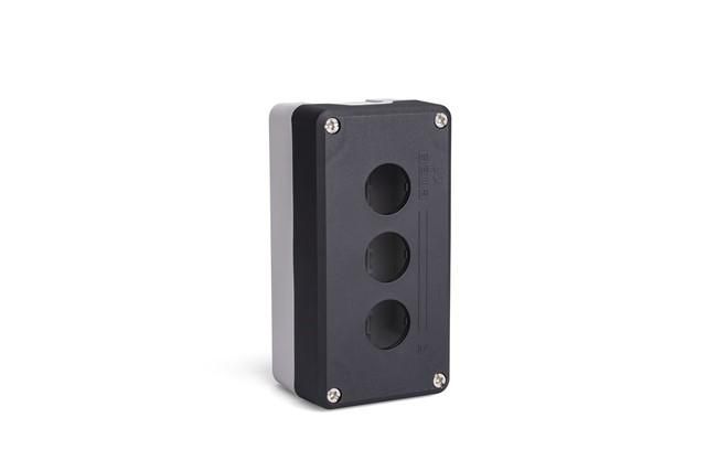 Корпус поста управления EMAS серии P с тремя кнопками - надежная герметичная конструкция из армированного пластика для организации управления и сигнализации в условиях повышенной запыленности и влажности. Артикул p3bos обеспечивает совместимость со стандартными кнопками d22 мм и соответствует требованиям TS EN 60947-3.