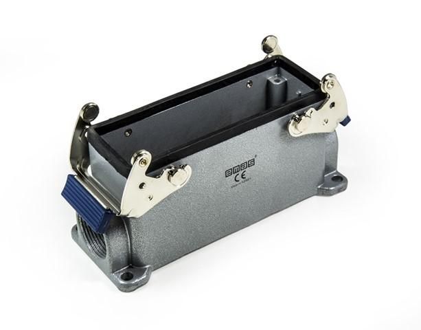 Корпус для разъема с металлическими скобами крепления EBMS24GD27 от бренда EMAS предназначен для защиты и фиксации соединителей в условиях механических нагрузок и вибраций. Подходит для установки на панели оборудования, где важна надежная фиксация без дополнительного крепежа.