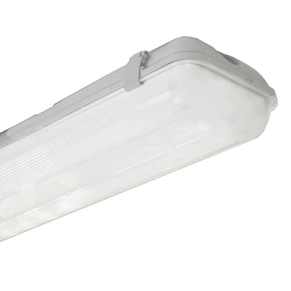 Корпус светильника ЛСП 01 2х36-012 IP65 служит для установки двух ламп типа ЛБ 36 Вт. Он защищает световой элемент от внешних воздействий и обеспечивает равномерное рассеивание света. Применяется в помещениях с высокой влажностью, пылью или требующих частой мойки: цехах, складах, гаражах, парковках, пищевых производствах и на улице под навесами.