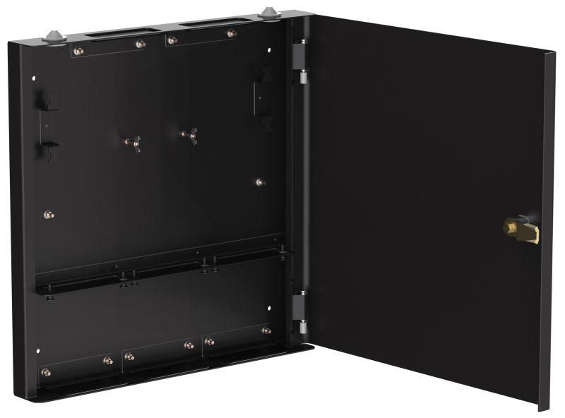 Корпус точки консолидации универсальный черный с планками 3 шт. ITK совместим со всеми стандартными планками для RJ45, SC, LC и других типов адаптеров, подходящими по габаритам. Для монтажа требуется предварительно подготовить нишу или закрепить корпус на поверхности с помощью крепёжных отверстий. Каждая из трёх планок легко вставляется в корпус благодаря пластиковым фиксаторам - без инструментов. Также предусмотрены зажимы для фиксации входящих оптических и медных кабелей. Корпус можно опломбировать после установки для защиты от несанкционированного доступа.