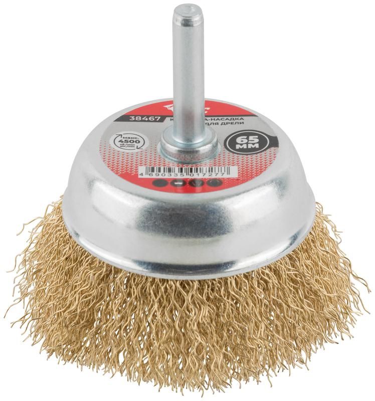 Корщетка чашечная со шпилькой стальная латунированная волнистая проволока 65мм КУРС 38467