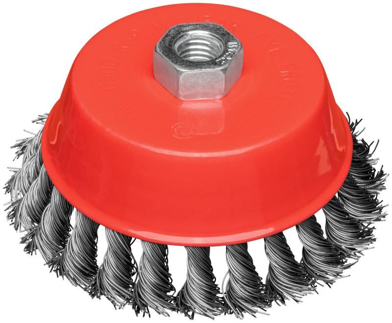 Корщетка-чашка гайка М14 стальная витая проволока 125мм блистер КУРС 39099