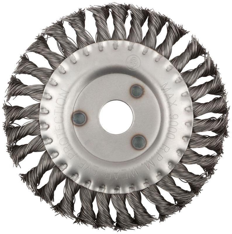 Корщетка дисковая прямая d посадочный 22.2мм стальная витая проволока 150мм КУРС 39031