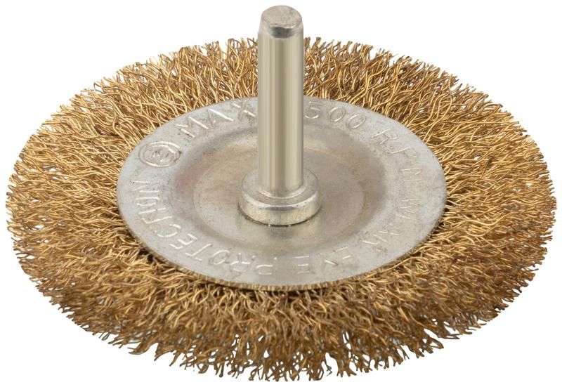 Корщетка дисковая прямая со шпилькой стальная латунированная волнистая проволока 75мм КУРС 38464
