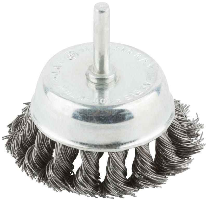 Корщетка тип "чашка" со штифтом стальная витая проволока 75мм MOS 38498М