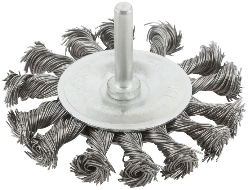Корщетка тип "колесо" со штифтом стальная витая проволока 75мм MOS 38493М