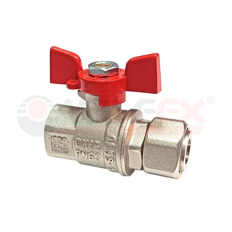 Кран шаровой PREMIUM для воды 11Б27фт1М латунный никелированный с накидной гайкой 3/4' ВР-ВР бабочка - VF.241.NB1.034.PREMIUM VALFEX