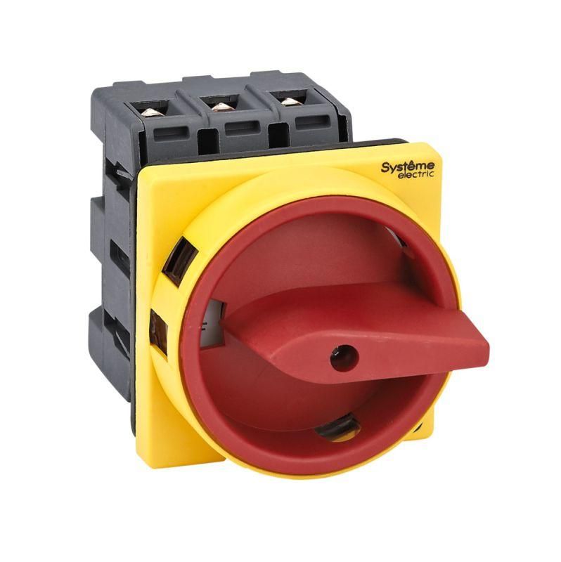 Выключатель-разъединитель Systeme Electric MSД40310R - устройство для безопасного отключения и коммутации трёхфазных цепей до 40 А, предназначенное для установки на дверцах щитов. Благодаря красной рукоятке и возможности блокировки замком, он обеспечивает четкую визуальную идентификацию и контроль доступа.