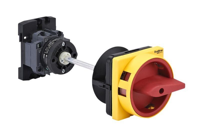 Выключатель-разъединитель SE MSD20340R - устройство для безопасного отключения электрических цепей до 20 А, предназначенное для установки на DIN-рейку или монтажную плату. Красная выносная рукоятка с возможностью блокировки позволяет оперативно и однозначно управлять питанием оборудования, особенно в условиях обслуживания и ремонта.