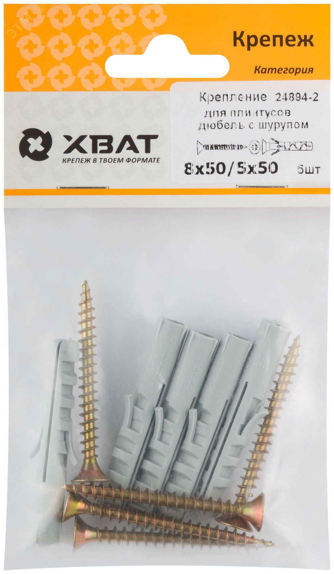 | Крепление для плинтусов: дюбель с шурупом 8х50/5х50 (5шт) - 24894-2 | 07.03.2026 | 32 уп. | 41,11 ₽ | уп. | от 1 дня |