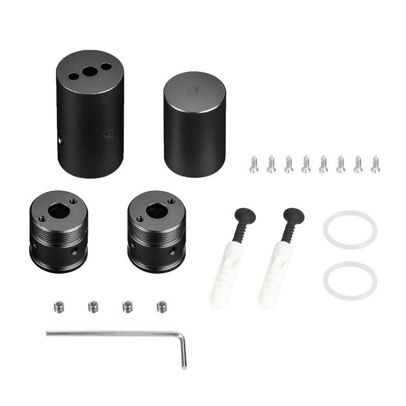 - Комплектация: крепление, две торцевые заглушки, два шурупа с дюбелями, два уплотнительных кольца, шестигранный ключ
