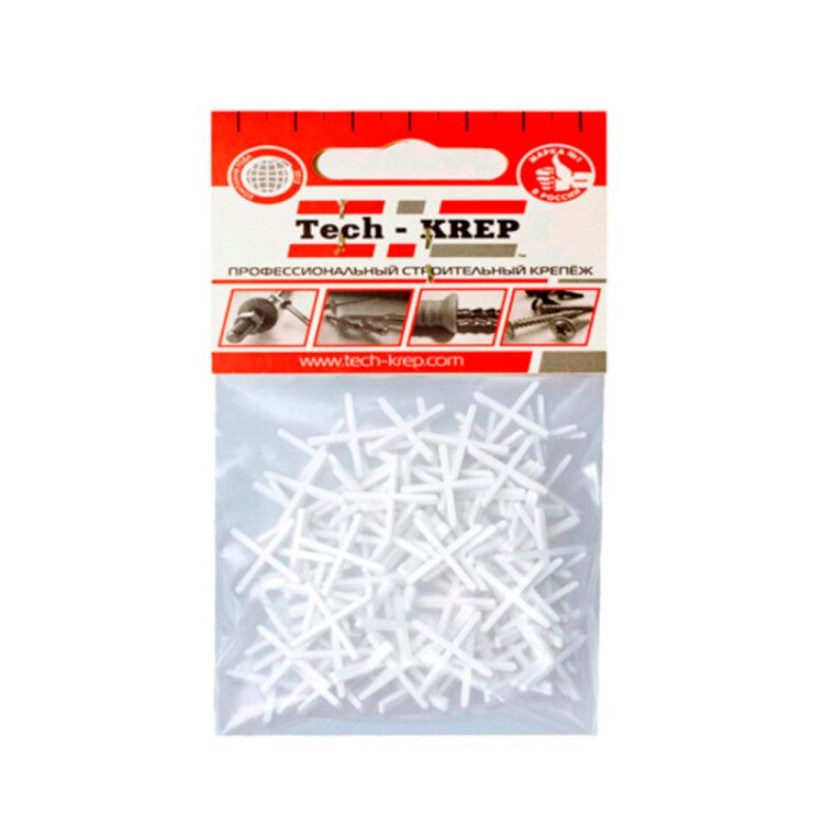 Крестик для плитки 1,5 мм (100 шт) - пакет | 103638 Tech-KREP - это незаменимый инструмент при проведении отделочных работ. Они изготовлены из полипропилена, что делает их прочными и долговечными. Крестики используются для создания равномерных швов при укладке плитки и для выравнивания поверхности.