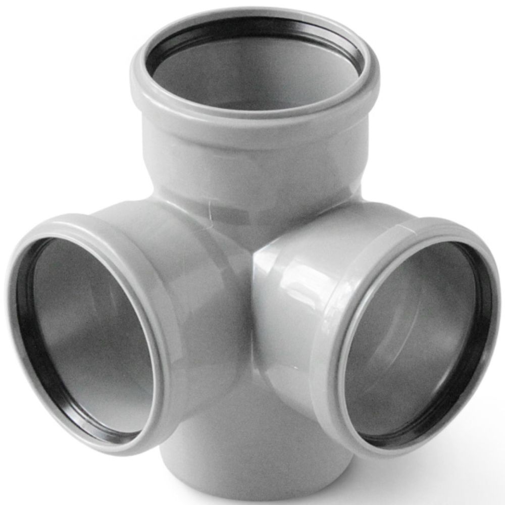 Крестовина двухплоскостная полипропиленовая 110x110x110/87,5 совместима с трубами и фитингами из полипропилена того же диаметра и стандарта (DIN/EN 1401-1). Монтируется методом термической сварки - необходимо использовать сварочный аппарат для полипропилена. Все четыре патрубка имеют гладкий конец для вставки в муфты или другие фитинги. Диаметр 87,5 мм позволяет подключить стандартные сифоны раковин, моек, душевых кабин. Перед сваркой поверхности зачищаются и обезжириваются. Для обеспечения герметичности соблюдайте время нагрева и выдержки согласно рекомендациям производителя сварочного оборудования.