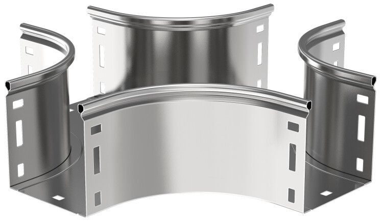 - Плавный внутренний радиус 100 мм предотвращает перегиб и повреждение кабелей при прокладке