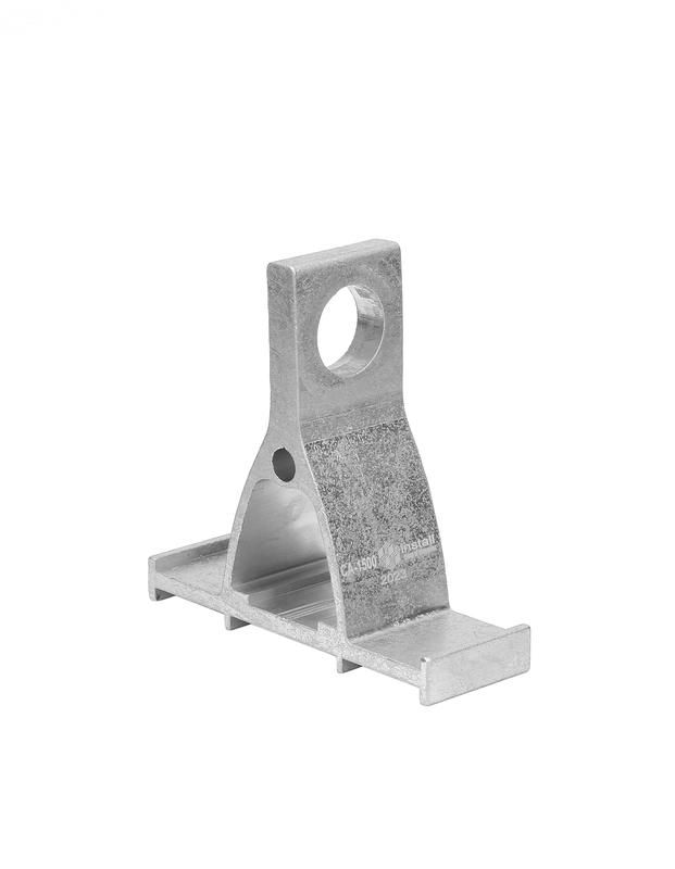 Кронштейн анкерный СА 1500 совместим с анкерными зажимами, соответствующими стандартным габаритам подвеса шириной 24 мм. Для крепления используются: