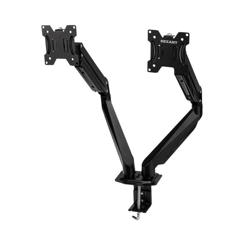 Кронштейн для двух мониторов 13''-32'', настольный с газлифтом, серия PROFI, REXANT - 38-0357 представляет собой надежное и удобное решение для крепления двух мониторов размером от 13 до 32 дюймов к столу. Он оснащен газлифтом, который позволяет легко и комфортно регулировать положение экранов в любых плоскостях.