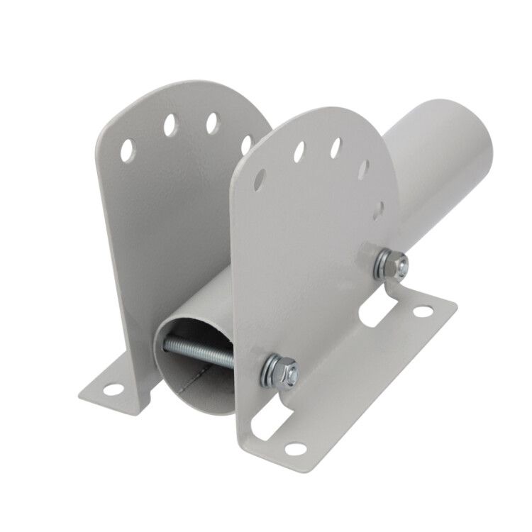 Кронштейн совместим со светильниками, имеющими цилиндрический крепёжный элемент диаметром до 57 мм. Для крепления к опоре применяются бандажные ленты или металлические хомуты - они не входят в комплект и должны быть приобретены отдельно. Монтаж выполняется на вертикальную плоскость: столб, стену, решётку. Установка не требует сварки - достаточно закрепить кронштейн и зафиксировать светильник в нужном угле.