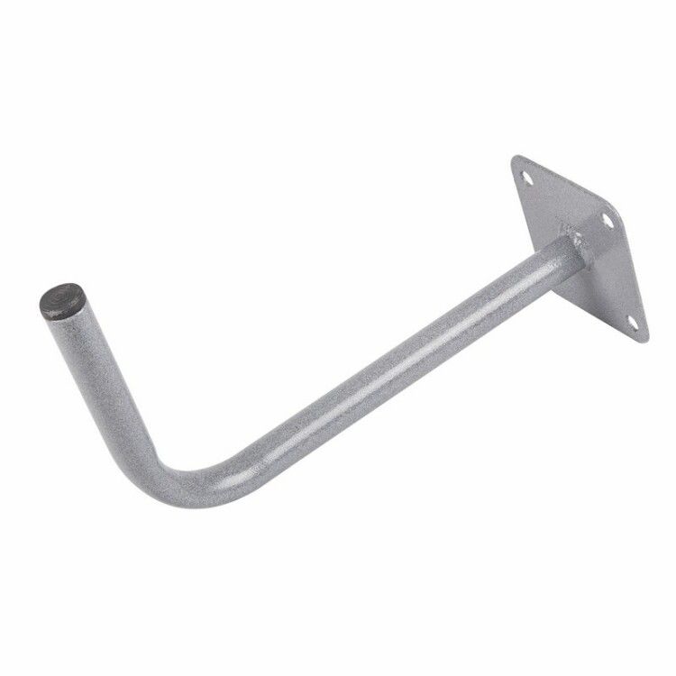 Кронштейн эфирный Г-образный 30 см совместим с антеннами, имеющими цилиндрический крепёжный элемент диаметром 22 мм. Для установки требуется подготовить отверстия в стене и закрепить кронштейн саморезами или дюбелями - в зависимости от материала основания (кирпич, бетон, деревянная обрешётка). Учитывайте, что максимальная масса антенны не должна превышать 2 кг. Крепёжные отверстия расположены на плоской площадке толщиной 2 мм - они рассчитаны на стандартные шурупы M6–M8.