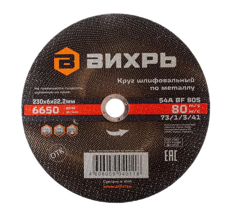 Круг шлифовальный по металлу 230х6х22,2 мм | 73/1/3/41 ВИХРЬ