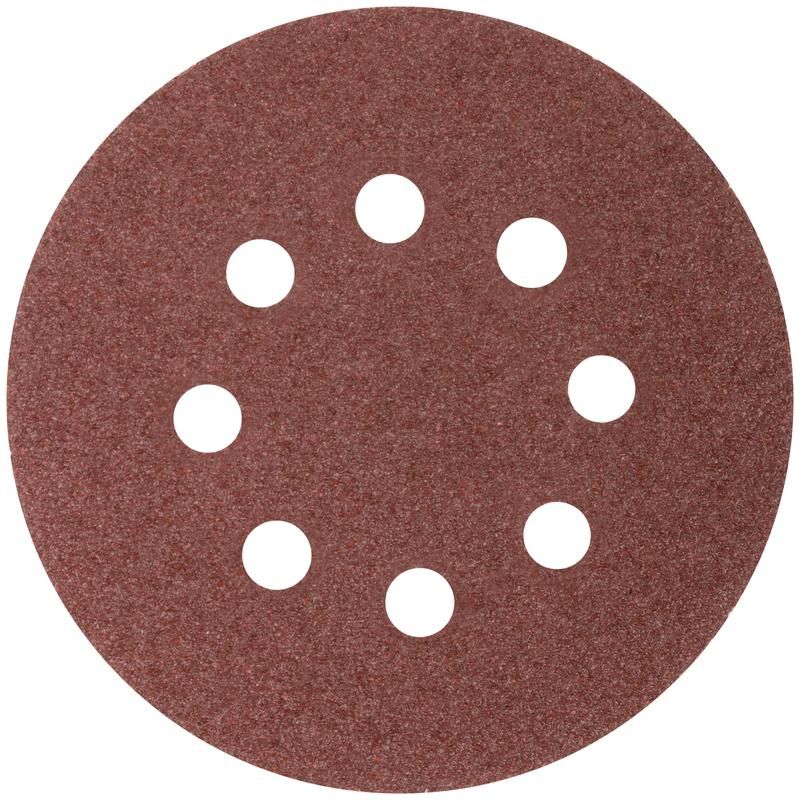 Диаметр кругов составляет 125 мм, что обеспечивает достаточную площадь обработки. Зернистость кругов - крупная, что позволяет эффективно удалять материал. Количество отверстий - 8, что способствует эффективному отводу пыли и обеспечивает долговечность кругов.