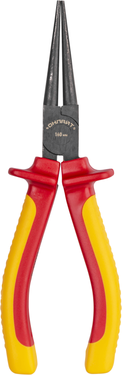 Круглогубцы диэлектрические усиленные 160 мм от бренда ОНЛАЙТ (артикулы 23913, 82938) - инструмент для безопасной работы с проводами и кабелями под напряжением до 1000 В. Усиленная конструкция и двухслойные рукоятки обеспечивают надёжную изоляцию, а стальная рабочая часть выдерживает частые нагрузки.