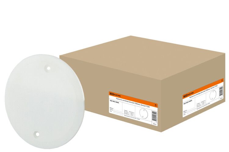 Крышка универсальная диаметр 86 мм, белый от TDM ELECTRIC (артикул sq1402-0005) - это резьбовая крышка для герметичного закрытия круглых установочных коробок диаметром 86 мм. Подходит для монтажа в стенах и потолках, обеспечивает доступ к внутренним соединениям проводов при необходимости обслуживания.