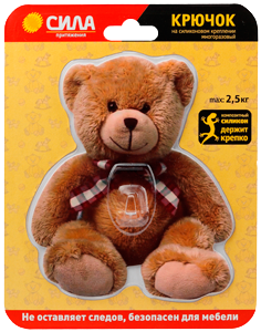 Крючок SHT12-S1C-12 на силиконовом креплении Мишка Teddy 12х14.5 см нагрузка до 2,5 кг | Б0002519 СИЛА