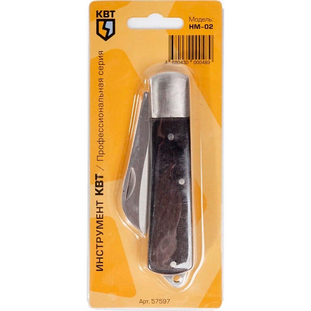 Нож монтерский НМ-02 от КВТ - компактный складной инструмент для точной разделки кабелей и снятия изоляции в условиях электромонтажа. Его серповидное лезвие и прочная стальная конструкция делают его надежным помощником на объектах, где важна контрольируемая глубина реза.