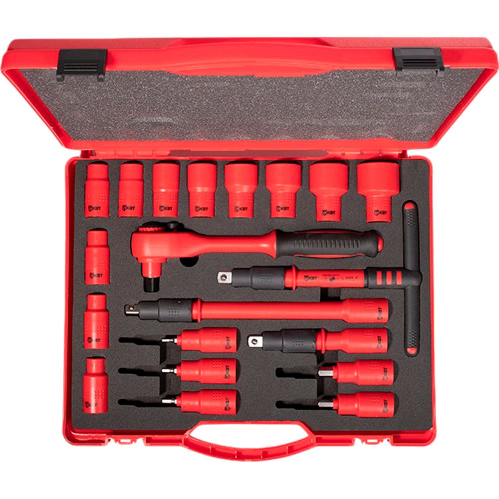 Все элементы набора совместимы с любыми инструментами, имеющими квадрат 1/2 дюйма. Диэлектрический трещоточный ключ и Т-образная рукоятка позволяют удобно работать в труднодоступных местах. Удлинители 125 мм и 250 мм увеличивают радиус действия без потери крутящего момента. Головки фиксируются на квадрате за счет точной посадки - не требуют дополнительных адаптеров. Перед использованием проверьте целостность изоляции - трещины или царапины недопустимы.