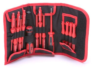 Набор диэлектрических отверток НИО-1113 серия ПРОФИ от КВТ - это комплект из 15 инструментов, предназначенный для безопасного обслуживания электрооборудования под напряжением до 1000 В. Все элементы набора имеют диэлектрическую защиту, что делает его надежным решением для электромонтажа, ремонта щитов и технического обслуживания на объектах с повышенной опасностью поражения током.