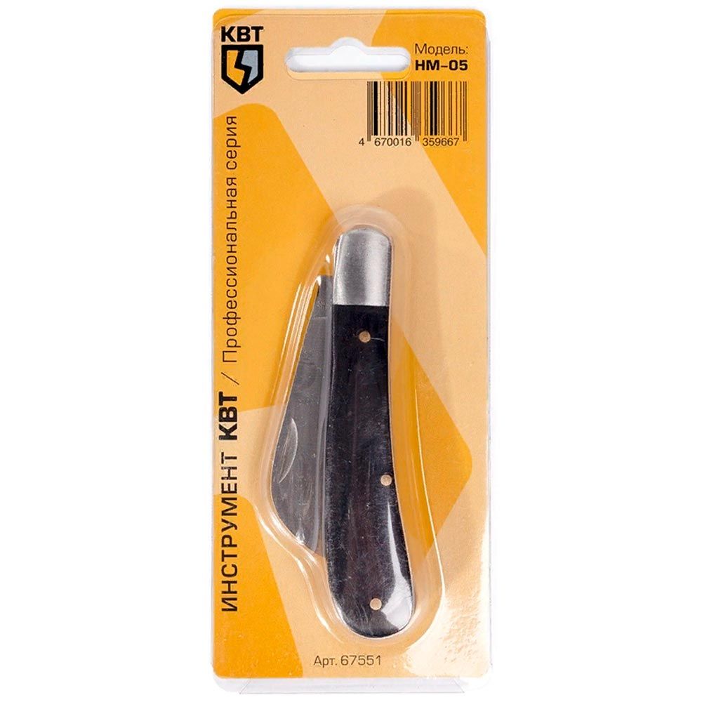 Нож монтерский НМ-05 серия ПРОФИ от КВТ - компактный, складной инструмент для точного снятия изоляции с проводов и кабелей, а также зачистки жил. Подходит для работы с сечением от 0,25 до 400 мм2. Артикул 67551.