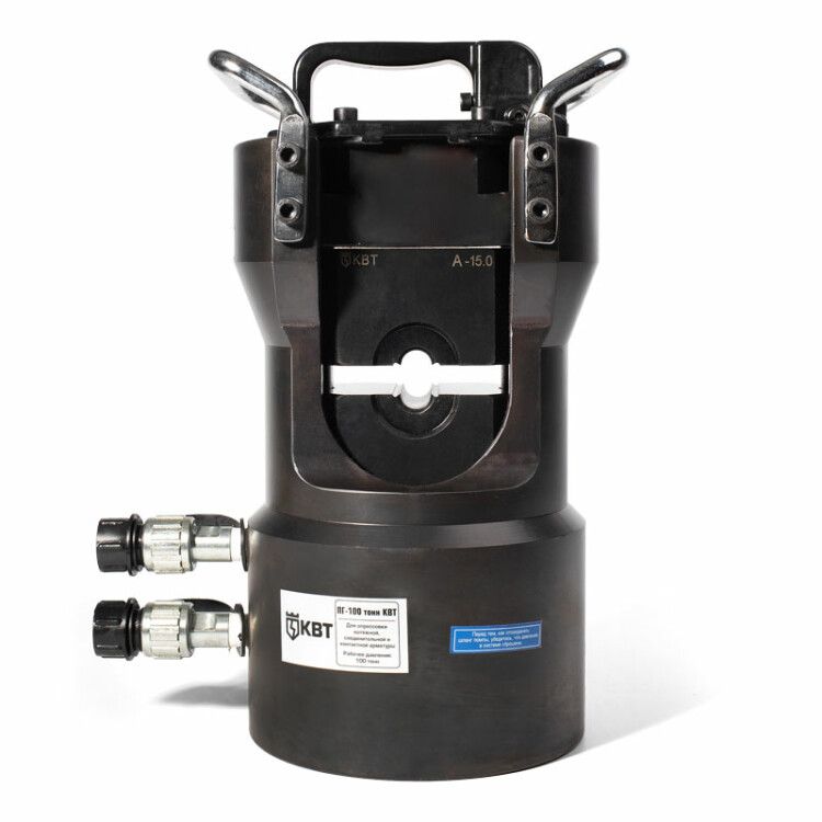 Пресс гидравлический ПГ-100 тонн серия ПРОФИ к-кт от бренда КВТ - это надёжный инструмент для опрессовки арматуры на высоковольтных воздушных линиях, рассчитанный на усилие до 100 тонн. Подходит для работы с алюминиевыми и сталеалюминиевыми проводами, обеспечивает точную формовку соединений благодаря круглому профилю матриц.
