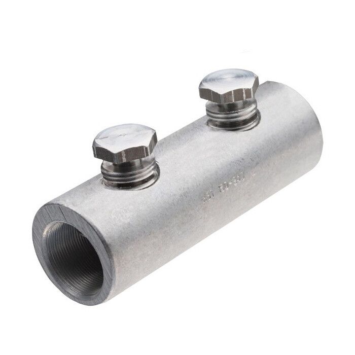Конструкция 2СБ-10/25 КВТ продумана для максимальной надёжности контакта. Рифлёная внутренняя поверхность повышает механическое сцепление с жилой, особенно важное при работе с мягкими материалами - алюминием. Эксцентричное отверстие под жилу обеспечивает равномерное распределение давления от двух болтов. Срывные шейки на болтах гарантируют, что отломанная головка не выступает над поверхностью - это снижает риск повреждения изоляции при последующей сборке муфты. Корпус выполнен из легированного алюминиевого сплава, который сохраняет форму даже после многократных нагрузок.