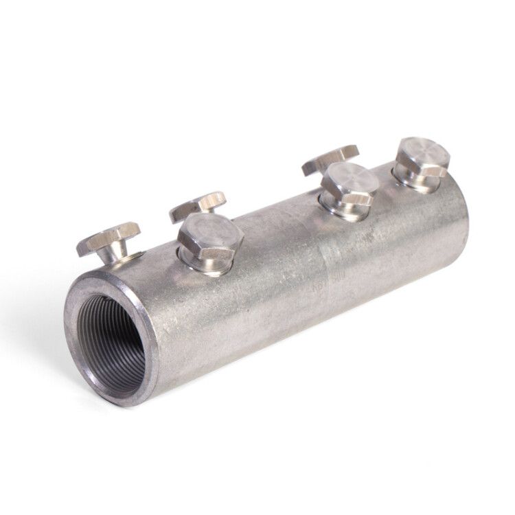 Соединитель болтовой 6СБЕ-300/400(Л) КВТ предназначен для надёжного электрического и механического соединения алюминиевых и медных кабельных жил сечением 300–400 мм2, работает при напряжении до 10 кВ. Применяется в распределительных устройствах, при монтаже термоусаживаемых муфт и в аварийных работах.