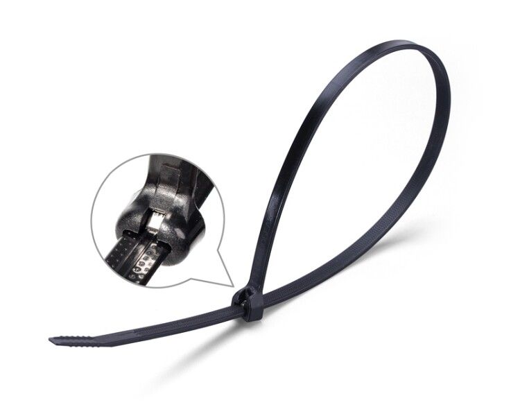 Материал полиамид 6.6 соответствует требованиям по самозатуханию и не содержит галогенов, что делает стяжку безопасной при использовании в закрытых системах с повышенными требованиями к пожаробезопасности. Отсутствие галогенов исключает образование токсичных паров при перегреве.