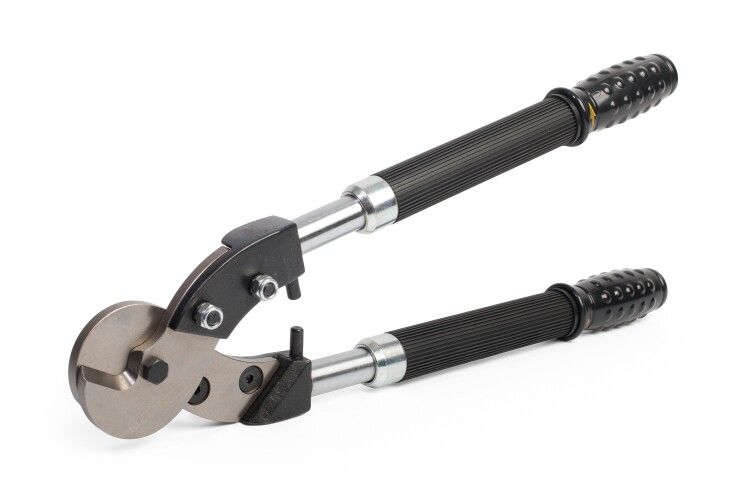 Тросорез ТР-12T серия ПРОФИ создан для резки твёрдых металлических элементов: стальных тросов, низкоуглеродистых прутков, контейнерных пломб и многожильных кабелей со стальной оплеткой. Подходит для работ на объектах энергетики, транспорта, логистики и строительства, где требуется быстрое и чёткое перекусывание прочных материалов без деформации.