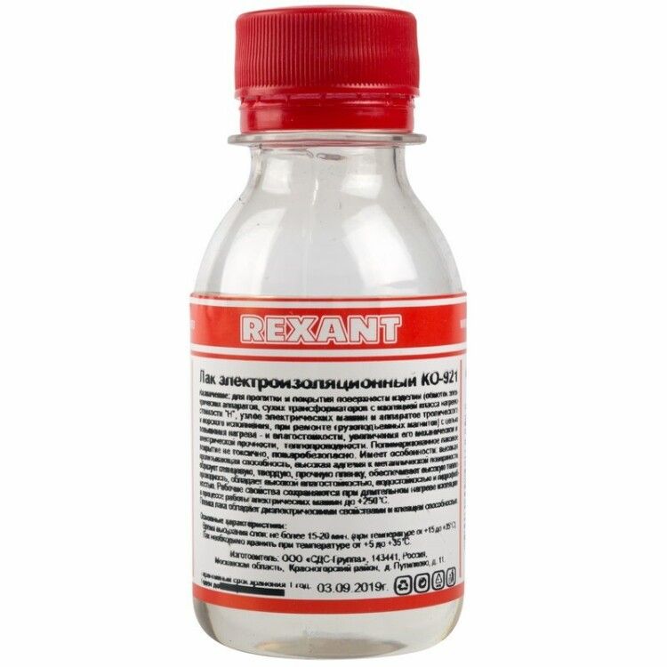Электроизоляционный лак KO-921 от REXANT - состав для пропитки и защиты электромагнитных компонентов, обеспечивающий повышенную надёжность изоляции при высоких температурах и влажности. Подходит для ремонтных работ и изготовления оборудования с изоляцией класса Н.